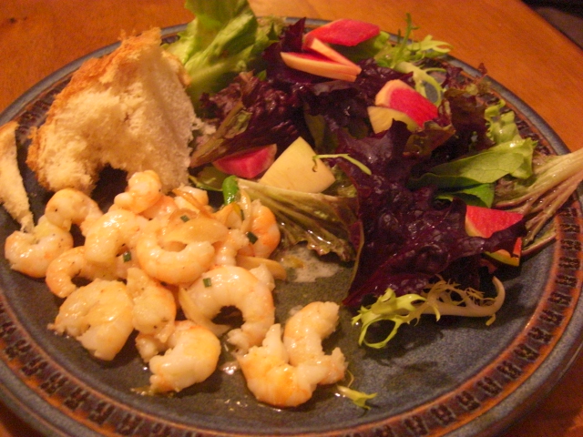 Since we skipped the shrimp Sunday night, I made scampi instead Monday. I started with “The Simplest and Best Shrimp” recipe from How to Cook Everything. It calls for warming the olive oil over low heat before slowing cooking the garlic. It takes so long to warm the olive oil! But at least I was prepared this time and brought a book to the kitchen. The wait was worth it.