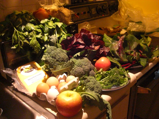 I had planned to have some shrimp, too, but I got forgot to defrost it. And we had a big lunch, so veggies were enough for supper.