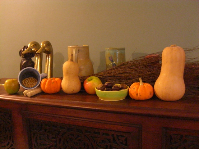 We’re slowly working through our fall decorations: the pumpkins are gone, the apples have been replaced, and I think that little butternut squash is the next to go…