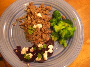 It was a great start to the CSA year. The lettuce, carrots, and eggs are all local foods that beat the pants off their conventional counterparts. (The beets and bread are from Kroger.) The crème fraiche is delicious – a cross between sour cream, cream cheese, and goat’s milk. And it makes an outstanding salad dressing. Just put a dollop on top and mix it up as you eat. It’s amazing – so amazing that I don’t think our crème fraiche will have a chance to be anything else.