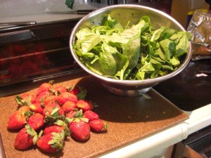 The strawberries are already cut up and flash frozen. This batch looked a little rough; I wonder if we’re getting to the end of Florida strawberry season. And I wonder if we’ll even have a Georgia strawberry season this year, given the lack of spring sun until recently.