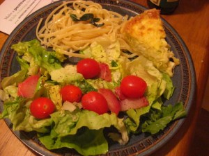 There was supposed to be shrimp in there, too, but I left the defrosted shrimp in the fridge too long. It might have been okay – it didn’t smell horrible – but I tossed it in the woods anyway. I expect to be immortalized in raccoon song.