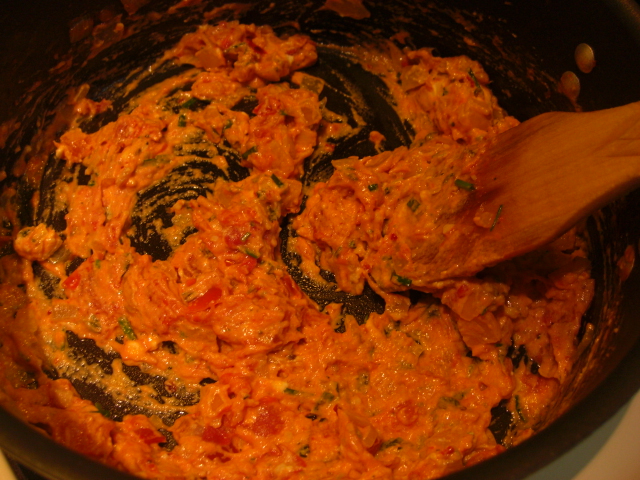 Instead, I added most of the seven-pepper chevre. It made a rich, creamy sauce, and we enjoyed it very much.