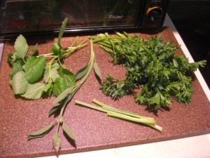 I’ve already had two pots of lemon balm tea! Tomorrow I’m going to make more tea with the sage buds and lemon balm. I’m not sure about the sage leaves. I may make a pasta dish with them or just let them dry for later. They seem so nice I kind of hate to dry them. The par-cel will all go into fried rice along with the green onions and beet greens. I’ve cooked the rice and have put a handful of shrimp in the fridge to defrost. Usually, I make a cup of uncooked rice, which makes about four servings. But today I made a little more than ½ a cup. It’ll be denser, but we’ll get through it faster.