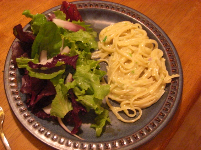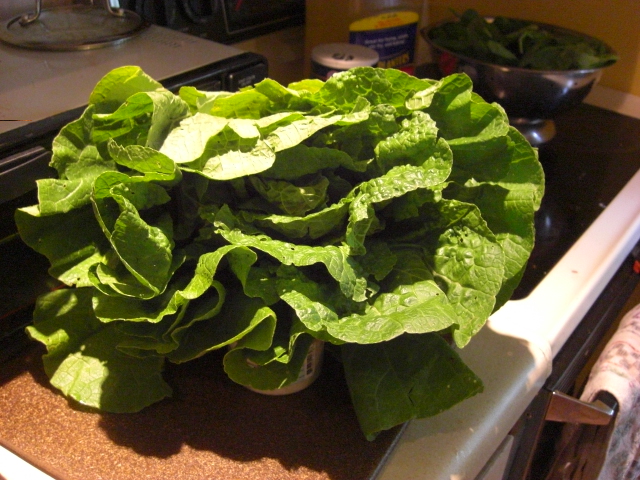 Last night we had garlic scape pesto and a salad of lettuce, spinach, and baby beet greens. The lettuce and spinach were especially nice, and we look forward to more salads in the coming days.