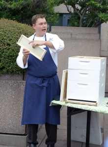 Turning to the beehives, Chef Gerstenecker held up one frame that held four pounds of honey – and there were 15-20 frames in that one hive.