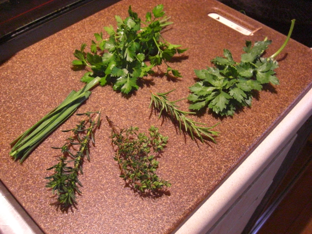 Fran suggested using these herbs in salad. That sounds good. Be sure to include the stems of the par-cel. You could also make an herb vinaigrette with the stronger herbs (thyme, rosemary, and savory). Here’s a site that discusses making vinaigrettes.