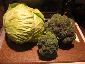 These fall/winter staples are great to have around. I’m thinking this cabbage will last in my fridge well until next month, so it’ll be good while the CSA is on vacation. (Here are some cabbage ideas.) If it doesn’t look like we’ll get to the broccoli (or last week’s cauliflower) in time, I’ll blanch and freeze it for later. But I’m hoping we’ll get to eat both the broccoli and cauliflower fresh. Steamed with butter, pepper, and salt, they make an easy, fast, and delicious side dish. No cheese sauce necessary!