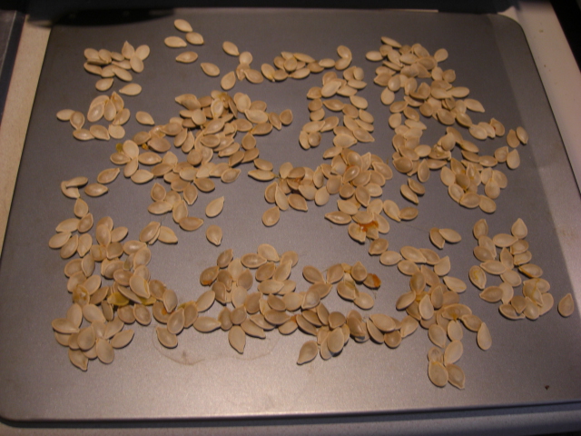 Pumpkins do yield a bunch of seeds, though. These are drying and will be ready to toast tonight or tomorrow.