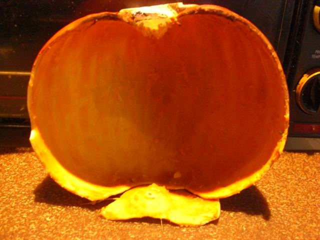 The pumpkin was oddly bland – so much fiber, so little flavor. It tasted exactly like the olive oil and salt we drizzled on it. So I’m thinking I will bake the next pumpkin and use it in a quickbread recipe instead.