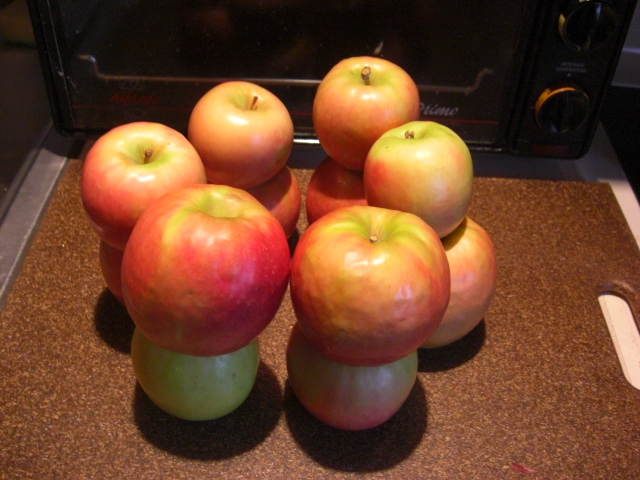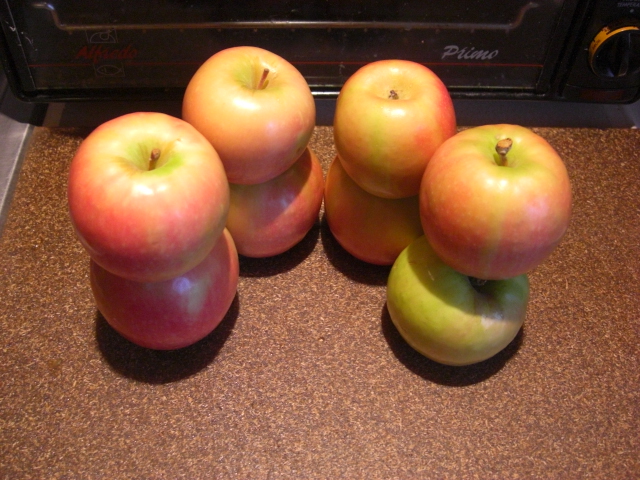 These apples are delicious for eating. We’ve been eating one a day, and it’s been awhile since we’ve spotted a doctor around here. (Lots of squirrels, though.)