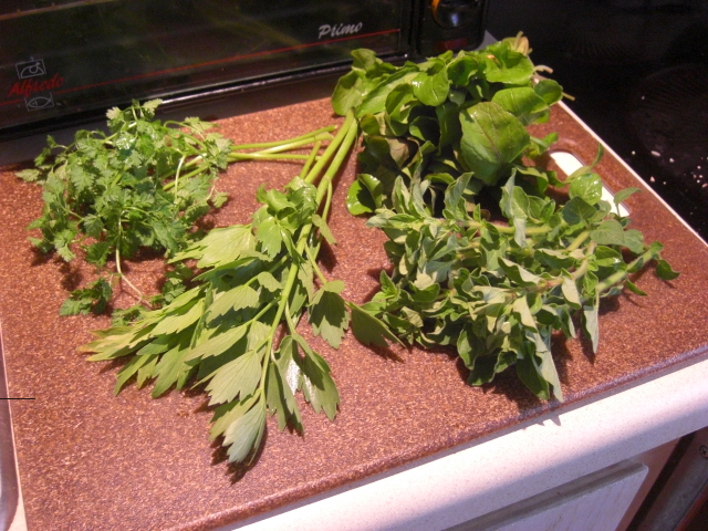 (Okay, so arugula’s not an herb. I chopped it up and added it to the Romaine in the salad spinner.)