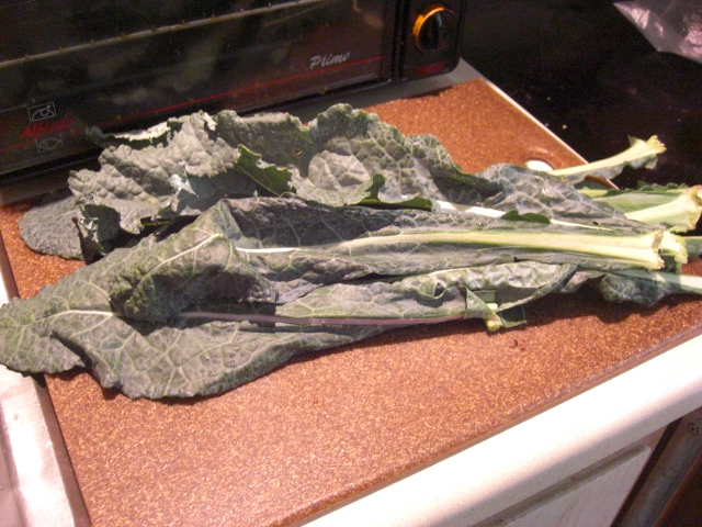 This kale is most likely tonight’s supper sautéed with chopped pecans and raisins. Yum!