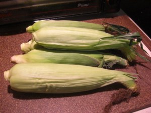 The corn’s gone already. We microwaved the ears in their husks and ate them up in three meals.
