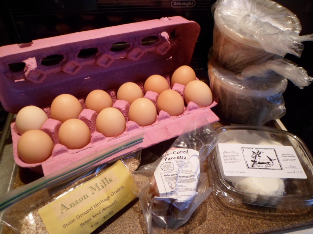 This eating better, eating local thing doesn’t have to be all or nothing. Take-out pizza or roasted chicken from Publix with local veggies is also a good combo.