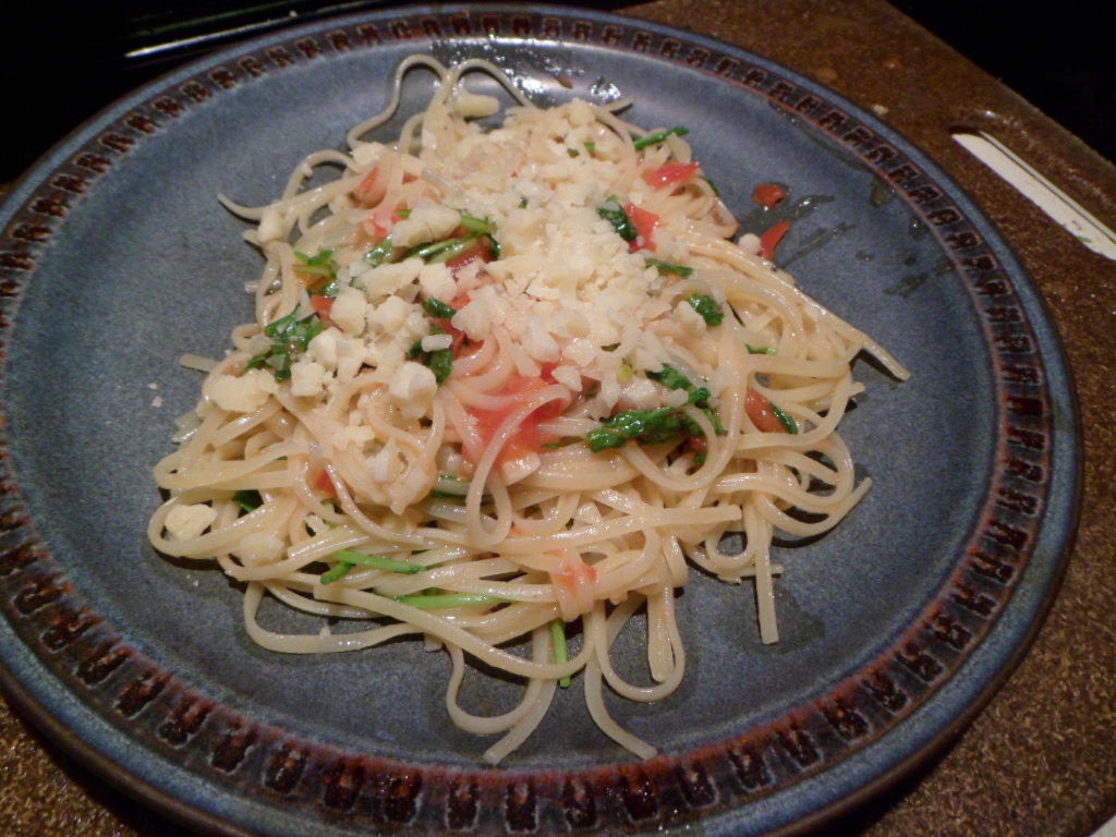 The other half of the red tomato went into this late night tomato-arugula-Parmesan pasta.