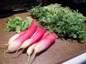 3/14 Spring-y radishes, pea shoots, and green onions