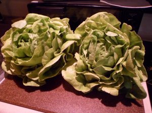 For Easter dinner, I brought a salad with butterhead lettuce, radishes, and green onions. I found a recipe that promised to mimic the Outback Steakhouse bleu cheese chopped salad, and it worked pretty well.