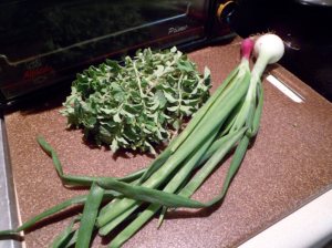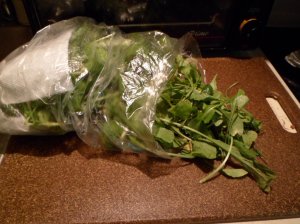 The radish greens were nice-looking enough that I saved them to sauté. But then I didn’t get around to it, so they ended up in the bucket anyway.