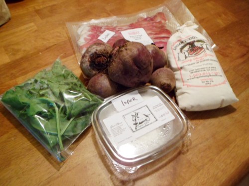 The speck (along with prosciutto or even bacon) is cured pork. I find it handy to have around during the summer when there are a lot a vegetables to cook. Sometimes I want to add just a little more kick to a dish. I brown and chop a couple of pieces and add it to the mix.